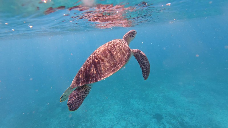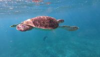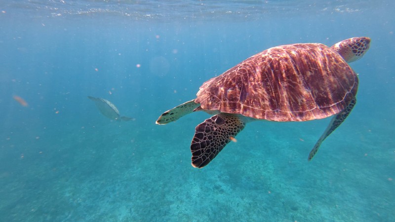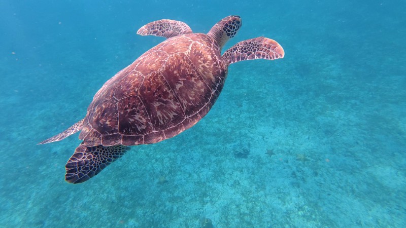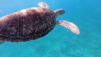 Ensuite après une brève halte à la grotte aux chauve-souris, snorkeling le long des falaises avec nos amies les tortues que nous avons pu retrouver après le repas servi à bord