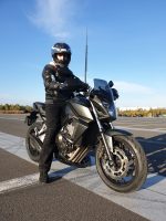 Première essai de la 650 par Dylan mais sur parking car la moto est trop puissante pour être conduite avec un permis A2 …