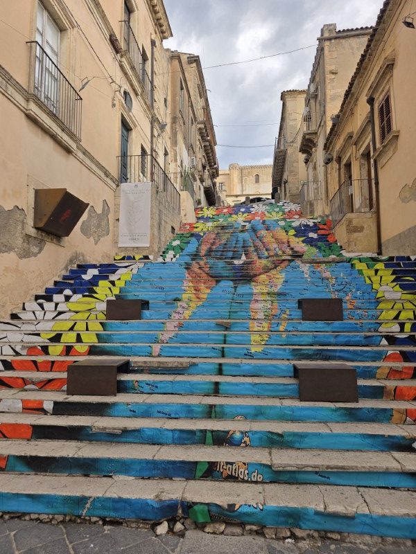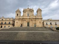 Visite éclaire de la ville de Noto sous un magnifique orage puis Raguse, juste le temps de se prendre un pv de stationnement car la voiture était garée juste après le panneau D’ailleurs on a toujours pas compris comment payer le pv